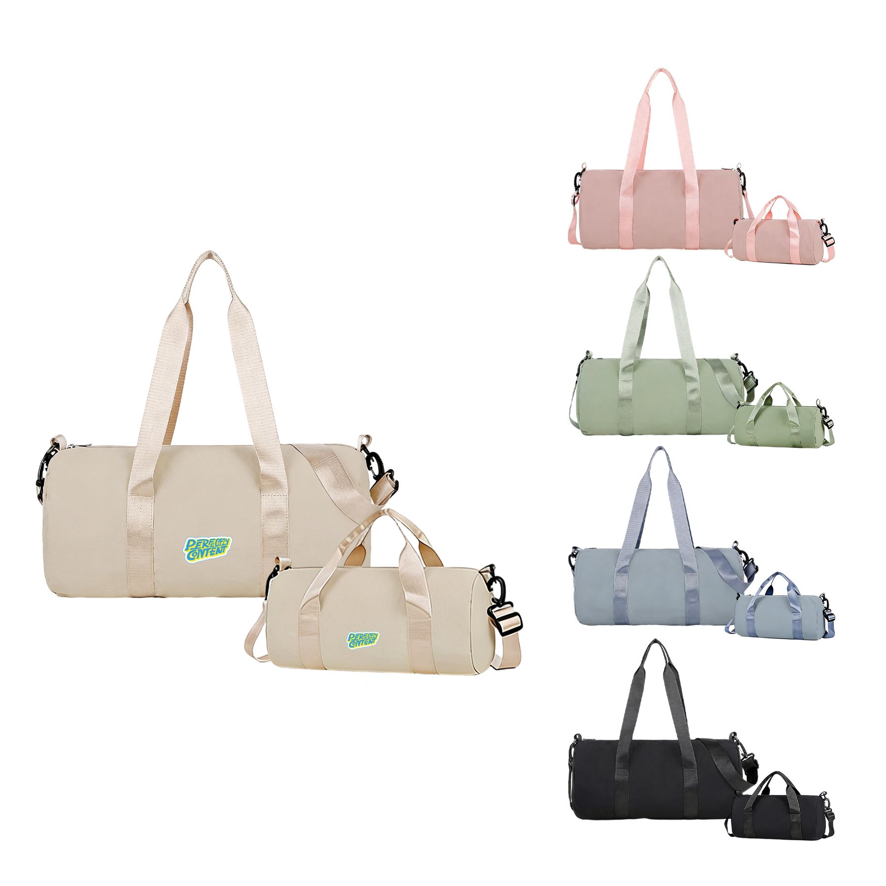 Gear up for every adventure with our Bucket Duffle Bag with Wide Straps, available in 2 sizes! Made of Nylon, this bag is lightweight and water resistant, featuring short hand straps and a long detachable strap for crossbody wear. It also comes with an inner 100% waterproof compartment for wet and dry separation. Perfect for gym sessions, sports and daily travel use. With full colour heat transfer to highlight your custom design, this bag is available in 5 colours.